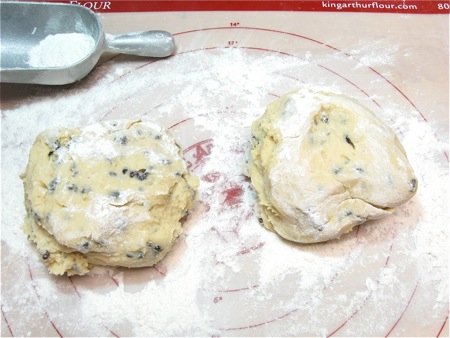 ...and plop the halves onto a very well-floured work surface.