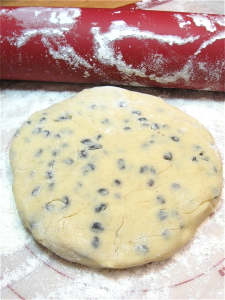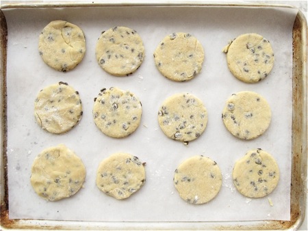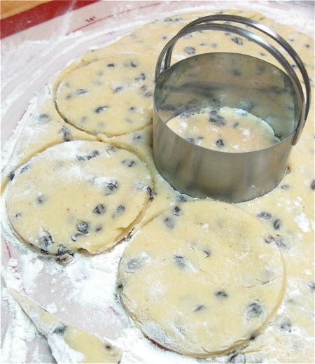 Using a 2 1/2" to 3 1/2" biscuit cutter or other round cutter, cut the dough into circles. If you're cutting on silicone, BE GENTLE; pressing down too hard may score the silicone.