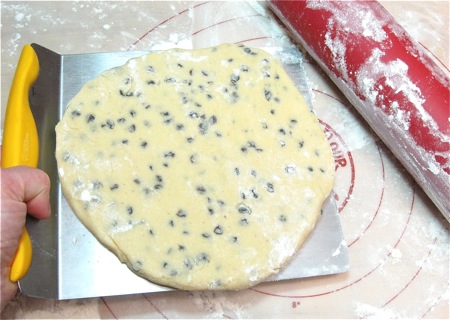 Be sure to lift up the dough and flour underneath it as you roll, so it doesn't stick. A giant spatula works well here.