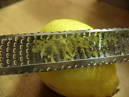 Fresh lemon zest will bring bright flavor to your jam. You need just a little bit, so turn your zester upside down as you scrape the lemon. This way you can monitor how much zest you have.
