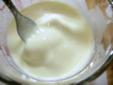 Measure 1 cup (227g) of heavy cream and add 2 large eggs. This will give you the richest scones.