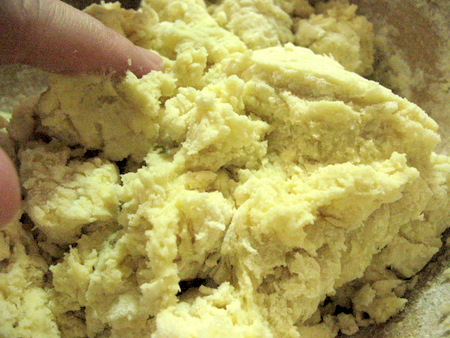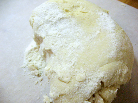 The scone dough should be slightly sticky to the touch at this point. If it seems a bit dry, go ahead and add a tablespoon of extra cream or milk.