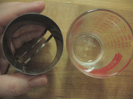Let's run a little test. Biscuit cutter on the left, glass on the right.