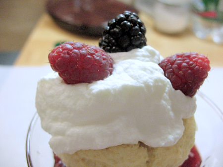 There, a dollop of freshly whipped cream and some juicy berries.