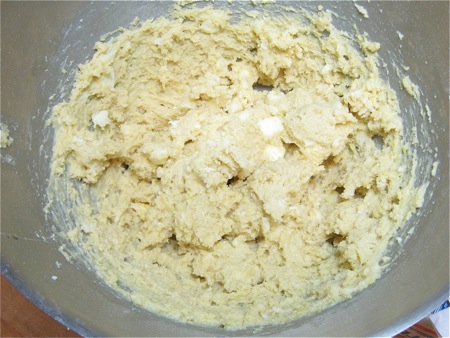 Scrape the sticky dough off the sides of the bowl, into the center.