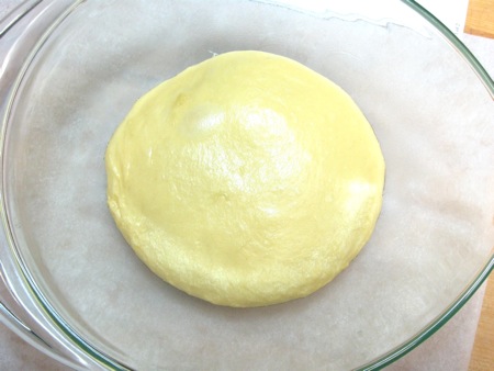 Remove the brioche dough from the refrigerator; you'll notice that it's risen a bit overnight.