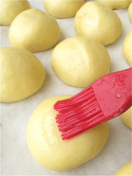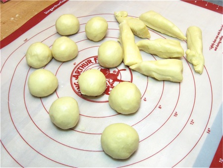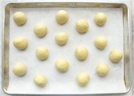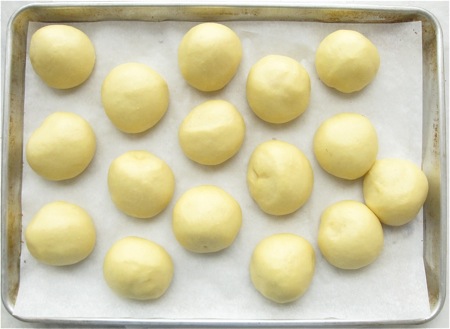 Shape each piece into a round ball. This is easy, as cold brioche dough is very pliable; think Play-Doh.