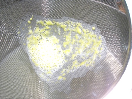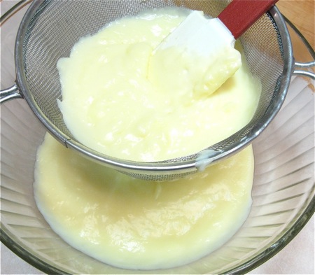 Remove the pastry cream from the heat and strain it through a sieve to remove any lumps.