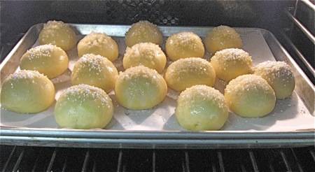 Space the balls on a lightly greased or parchment-lined baking sheet, leaving about 2" between them; they'll expand quite a bit.