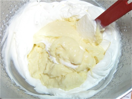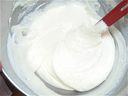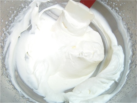 Your cream may look thicker and more golden than the one I'm stirring together in the photo above. I'd originally whipped a full cup of cream; after the fact, I decided 1/2 cup yielded a filling whose thickness was more to my liking.