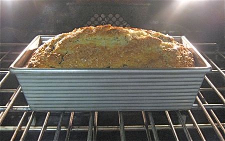 Bake the bread for about 50 minutes, until a toothpick inserted into the center comes out clean.
