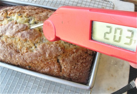 When it's finished, the temperature of the bread at its center will range between 200°F and 210°F, as measured with an instant-read thermometer.
