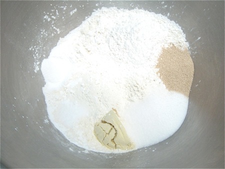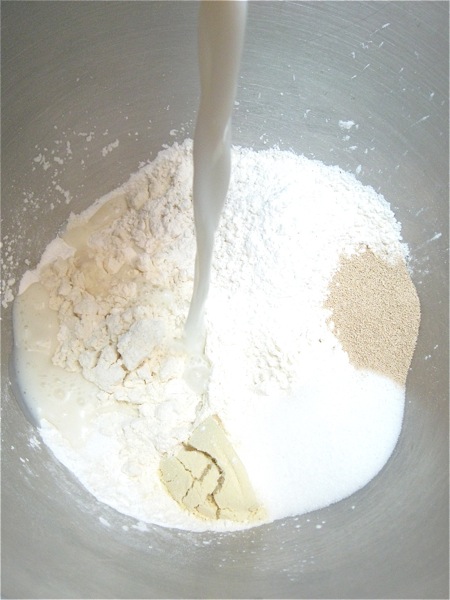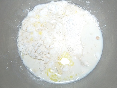Add 1 cup + 2 tablespoons (255g) lukewarm milk.