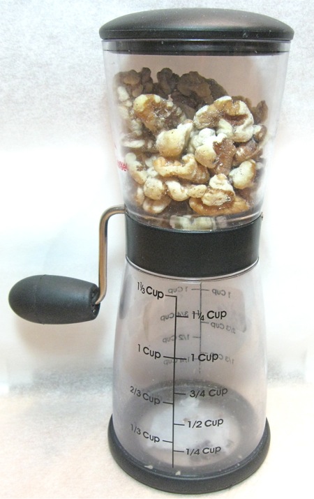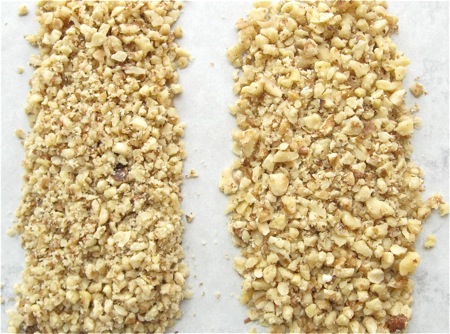 ...yields nicely chopped nuts. Turn the handle one way for a finer dice (left); the other, for more coarsely chopped nuts.