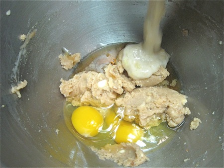 Add 1/4 cup (85g) honey, 2 large eggs...