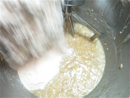 Next, the final key ingredient: flour. Add 2 cups (227g) King Arthur Golden Wheat. Milder Golden Wheat lacks the traditional, more assertive flavor of regular whole wheat, but still retains all the nutrition.
