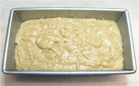 Grease an 8 1/2" x 4 1/2" loaf pan. Don't have that size loaf pan? Then grease your 9" x 5" loaf pan; your loaf will just be a bit shorter/flatter.