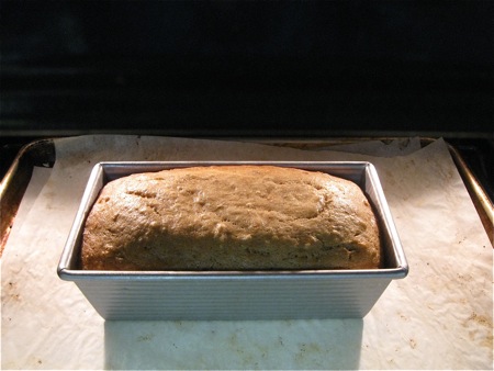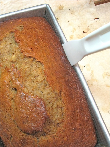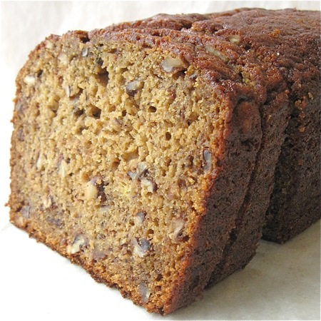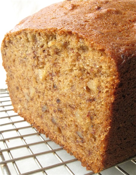 Yes, banana bread. Not sandwich bread, or whole wheat bread, or baguettes, or no-knead or zucchini. Just that comfortable old denizen of years gone by – dark, moist, tasty banana bread.