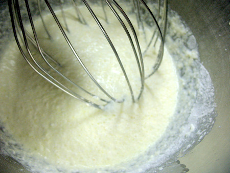 While the pie shell is cooling, make the filling. In the bowl of your mixer fitted with the whisk attachment add the filling ingredients: