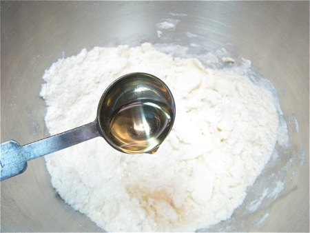 Add 1/4 cup (43g) vegetable shortening, working it in until it's well combined with the dry ingredients.