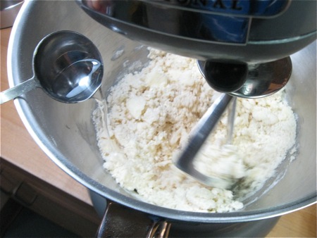 Add 3 tablespoons (43g) ice water while tossing with a fork, or mixing slowly.