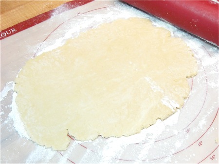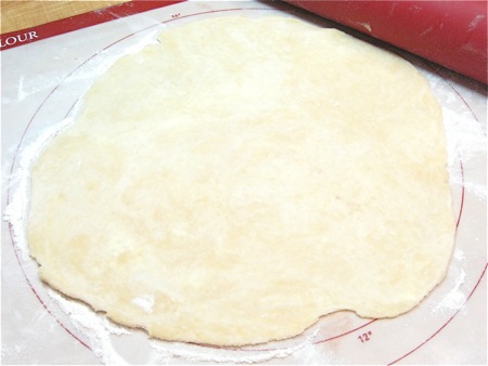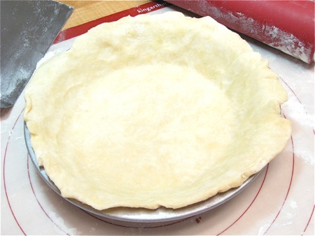 Roll the dough into a 12" to 13" circle. I'm at barely 12" here; it needs to be a bit larger than this, in order for there to be enough crust for a nice crimped edge.