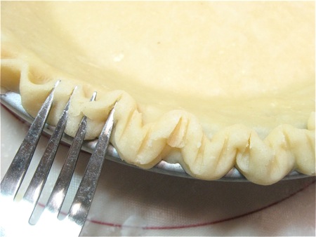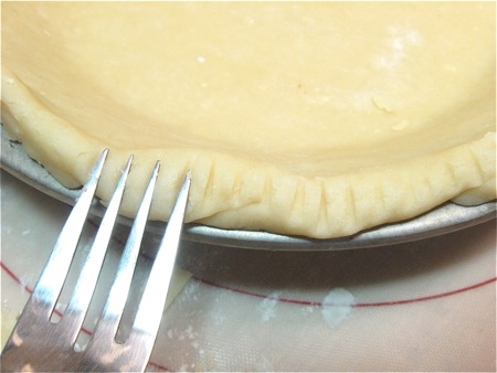 When you find yourself without much crust to spare, make a simple "crimp" by pressing all around the crust with the tines of a fork.