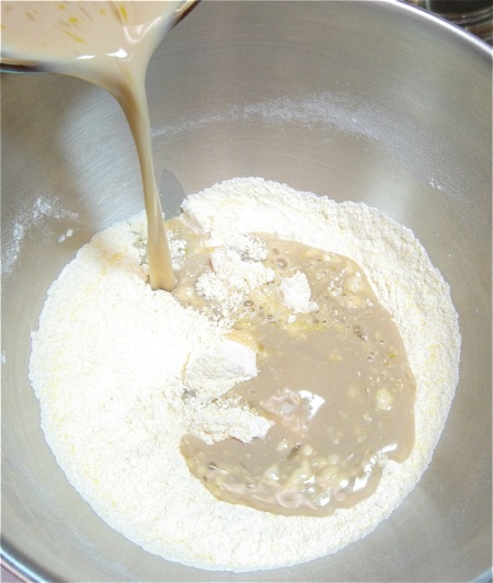 In the case of stir-together muffins – muffins where you simply stir wet and dry ingredients together, without beating butter and eggs and sugar together first – less is more. The less you stir, the less the flour's gluten will develop, the more tender your muffins will be.