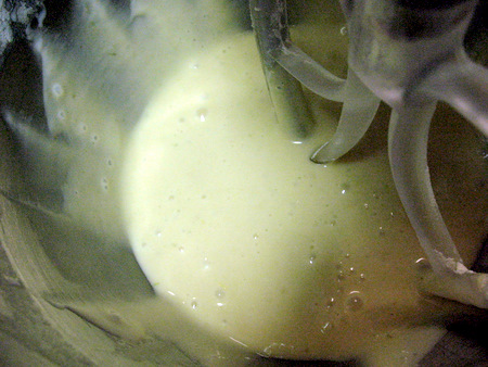 Blend in 1 tablespoon lime juice. Beat in 2 eggs, one at a time. The mixture will lighten further.