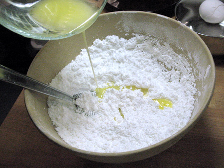 The glaze will be quite thick to work with at first, but take your time and stir well. You're looking to make a glaze that flows like molasses. You can adjust with more liquid or sugar as needed to get the right consistency.