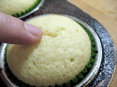Beautiful! Nice and domed and lightly springy when touched. These particular cupcakes don't brown up, so remember that when you check them as they bake.