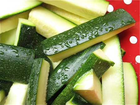 That won't be hard at this time of the year, right? Don't be tempted to use those baseball-bat-sized zucchini hiding under the leaves in your garden, though; you want small, slim zucchini here.