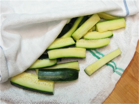 OK, back to the zucchini. See how they've started giving up liquid?