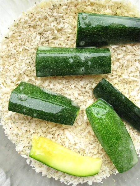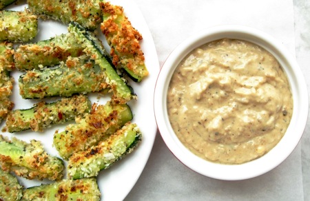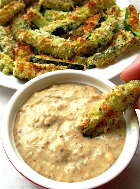 The resulting 1 1/2 cups dip can be used not only for these zucchini sticks, but as a tasty sandwich condiment.