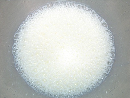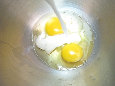 Beat the eggs and milk until light and foamy, about 3 minutes at high speed of a stand or hand mixer.