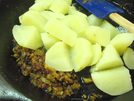Add 2 cups (454g) cooked, drained, chopped potatoes.