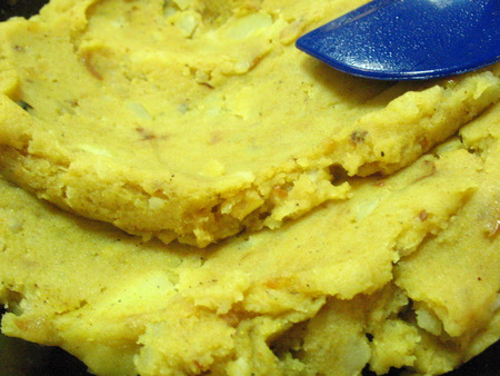 Blend and mash the potatoes together with the onions and spices. I like my filling a bit on the smooth side, but you can leave chunks of potato depending on what you prefer.