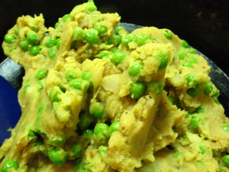 While the dough is chilling you can make the curried potato and pea filling.