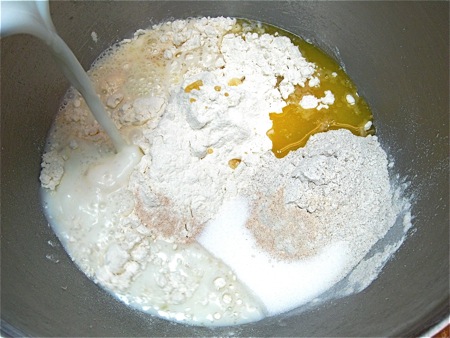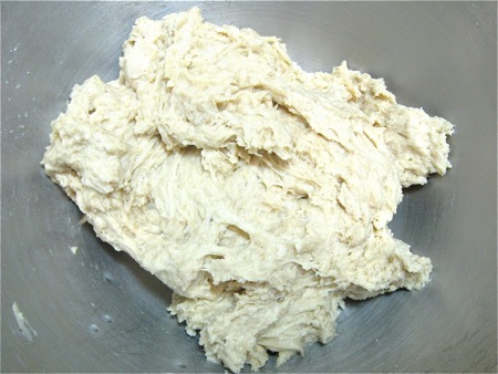 Cover the bowl and let this shaggy mass rest for 15 minutes or so, to absorb the liquid and make it easier to knead.