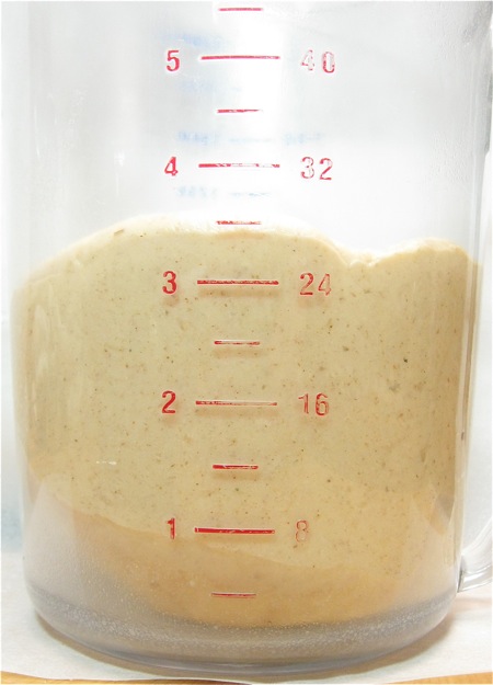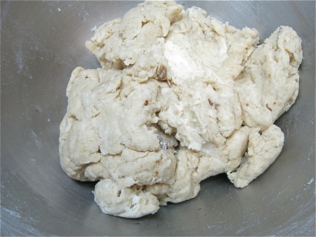 I decided right off that I'd guessed wrong on the amount of liquid; see how "gnarly" this dough looks? I knew that a short rest would allow the flour to absorb the liquid and give me a truer picture, but still – experience told me this was just too dry. So I added a tablespoon of water...