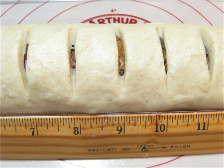Spread the filling over the dough, and roll it up the long way, to make a log that's a generous 18" long.