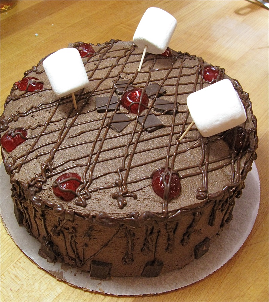 Ah, a beautifully decorated cherry-chocolate cake.