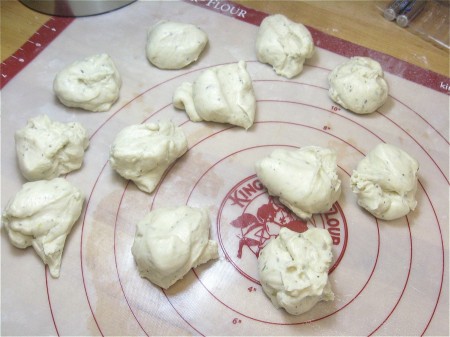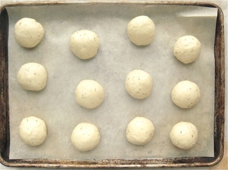 Divide the dough into 36 pieces, and round each piece into a rough ball.