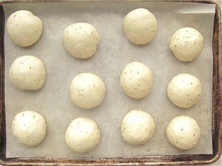 Round the 12 pieces of dough into smooth balls...