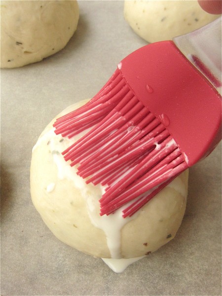 As long as I was playing with shapes, I decided to experiment with different toppings, too, ranging from whole egg to salt water to a cornstarch wash. I wanted to see how the rolls' crust color would change.