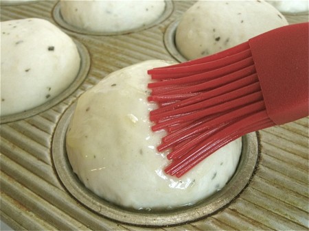 Let rise, brush with melted butter (for a soft, buttery crust), and bake for 25 to 30 minutes.