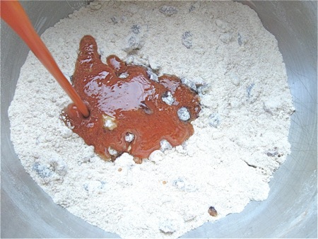 Yes, tomato juice. Why tomato juice? It adds the acidity necessary for the baking soda to work, giving these muffins the boost that ordinarily might come from sour cream or yogurt.