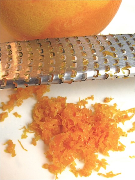 Next, grate the peel from a medium to large orange. A microplane zester works very well here.