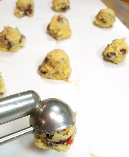 Drop the dough by heaping teaspoonfuls onto the baking sheets, leaving about 1 1/2" between them. A teaspoon cookie scoop works very well here.