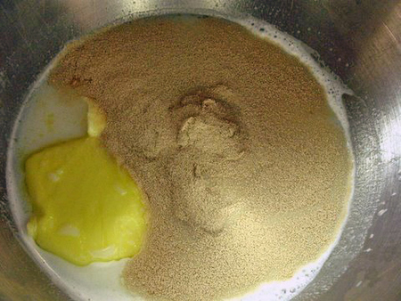You can mix up this dough by hand, or in your stand mixer. In your work bowl, place: